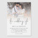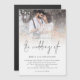 Modern Script Photo Overlay Wedding Invitation. A practical keepsake your guests can keep easily on display. An informal set typography in black for the main heading the Wedding Of complementing the rest of the text which you can easily personalise. Replace the sample photo with your own favourite.
