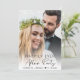 Modern elopement and small wedding announcement and reception invitation to let family and friends know that you got married in a private wedding ceremony, and to invite them now to a wedding reception. The front features your wedding day photo overlayed with "Happily Ever After Party" in a mix of simple typography and an elegant script. Under your photo, add your first names and wedding date. On the reverse side, personalise your message in more detail and add party or reception details and your names in a signature-like script.