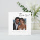 Express your gratitude in style with our elegant Modern Script Photo Wedding Thank You Card. Featuring a customisable photo template on the front, this card allows you to showcase your favourite wedding moment. The back includes easy-to-edit text templates, making it simple to personalise your message to family and friends. Perfect for newlyweds, this card combines sophistication with convenience, ensuring your heartfelt thanks are beautifully felt. Ideal for weddings, anniversaries, and special occasions.