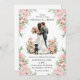 elegant modern chic script pink floral budget wedding invitation ,with custom bride and groom watercolor illustration