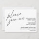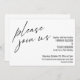 In simple, elegant piece, the modern, handwriting script font was used to create a graphic depicting the words "please join us". Use the template fields to add your personal details and make this unique, modern design your own. The background can be changed to any colour you prefer. Please reach out with any special requests or for customising assistance. // 158 //