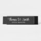 Modern professional black desk name plate with your name in a stylish white script. Add a title in simple white typography.