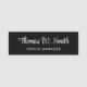 Modern professional black name tag with your name in a stylish white script. Add a title in simple white typography.