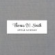 Modern professional white name tag with your name in a stylish script and title in simple typography.