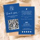 Modern minimalist script and QR code in blue business order thank you. Add your social media. With an elegant signature script font, all the colours are editable , add your logo. 5 star review for your customers.