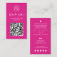 Modern minimalist script and QR code in hot pink business order thank you. Add your social media. With an elegant signature script font, all the colours are editable , add your logo. 5 star review for your customers.