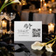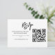Streamline your guest list management with this tech-savvy response card designed for the efficient modern couple. The layout features bold black brush script typography paired with a clean scannable code for seamless digital replies. Easy to customise with your specific website URL and deadline details.