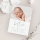 This modern photo baby baptism invitation features hand lettered calligraphy script baptism art that is moveable and that you can easily change the colour of, a horizontal photo and editable text. Click the edit button to customise this design.