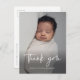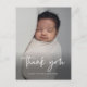 This budget friendly Modern Script Baby Photo Baptism thank you card features a beautiful full bleed horizontal photo and hand lettered thank you script and minimal editable text. Click the edit button to customise this design.