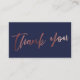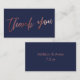 Whether you use this card as a wedding favour tag or replace the name and date fields with a personal message, its sophisticated, modern design is sure to grab the attention of those who receive it. The background is covered in editable navy blue; change this to any colour you prefer. Featuring a modern brushed handwriting graphic overlay reading "thank you", your important message of gratitude is front-and-centre and impossible to miss. Update the back with your personal details using the template fields, or click to customise further and make this design your own. // 100 //