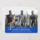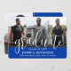 Share the joy of a high school or college graduation with custom 4 photo collage royal blue and white announcements. The pictures and all wording on this template are simple to personalise with any details of your choice, such as party invitation info, parents' names, special honours, degree title, favourite inspirational quote, graduate's contact info, or plans for the future. All colours can be customised with the Zazzle design tool. (IMAGE PLACEMENT TIP: An easy way to centre a photo exactly how you want is to crop it before uploading to the Zazzle website.) The royal blue, white and black stripe design features modern script calligraphy with a mortar board cap, elegant classic serif typography, and four photos of your choice, such as senior pictures or images from the commencement ceremony. Available as both printed and downloadable digital announcements, these modern graduation cards are a stylish way to share a special day celebration with family and friends. Congratulations to the graduate!