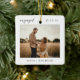 Modern Script Rustic Engagement Photo Keepsake Ceramic Ornament
