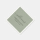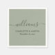 Elegant personalised sage green wedding paper napkins with a modern script font. Easily personalise online. Matching items available to complement these minimalist sage green wedding paper napkins.