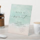 Beautiful turquoise abstract watercolor sparkling ocean wave and hearts in the sand beach background, toped with stylish script and elegant serif font, modern and simple. Great love is sweet take a treat sign for nautical beach bridal shower, tropical destination wedding, coastal ocean themed party.