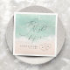 Beautiful turquoise abstract watercolor sparkling ocean wave and hearts in the sand beach background, toped with stylish script and elegant serif font, modern and simple. Great the night before napkins for romantic modern rehearsal dinner, nautical beach wedding, tropical destination wedding, coastal ocean themed wedding in summer.