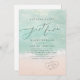 Beautiful turquoise abstract watercolor sparkling ocean wave and hearts in the sand beach background, toped with stylish script and elegant serif font, modern and simple. Great nothing fancy just love wedding invitation for intimate nautical beach wedding, tropical destination wedding, coastal ocean themed wedding in summer.