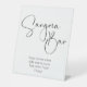 This minimalistic script Sangria Bar Pedestal Sign is the perfect way to celebrate your bridal shower in style. Features elegant and modern typography. You can personalise this design by clicking on "Personalise this template" or if you wish to change the font, background colours or arrange the design elements in a different way you can click on "Edit using Design Tool".