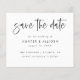 This modern photo wedding save the date flat card has a warm, minimalist design. The front features a lively script text above your first names and date. On the back, we've set the background as transparent, so that the color of the paper will serve as the base color. You can choose a color for the background, if you prefer. You can also edit the text to suit your needs. You might want to delete a text field that you don't need, or change the color or font of some text. Use the intuitive design tools, your favorite photo and your inspiration to make this stylish wedding save the date flat card uniquely yours!