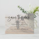 This modern photo wedding save the date flat card has a warm, minimalist design. The front features a lively script text above your first names and date. On the back, we've set the background as transparent, so that the colour of the paper will serve as the base colour. You can choose a colour for the background, if you prefer. You can also edit the text to suit your needs. You might want to delete a text field that you don't need, or change the colour or font of some text. Use the intuitive design tools, your favourite photo and your inspiration to make this stylish wedding save the date flat card uniquely yours!