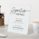 This customisable bar sign features two sections — His Signature Drink and Her Signature Drink — allowing you to highlight each partner’s favourite cocktail with custom names, ingredients, and optional drink illustrations. Whether you’re serving classic cocktails, trendy craft drinks, or themed wedding beverages, this elegant typography layout makes your bar menu feel intentional and beautifully curated.