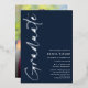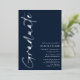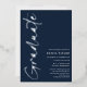 This is a minimalist and modern dark blue graduation announcement card. It is a simple and stylish handwritten script design in classic blue and white with "Graduate" in real silver foil and a photo at the back. Please contact the designer for any queries about this design.