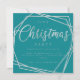 MODERN Script Silver Teal Glitter Christmas Party Invitation