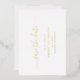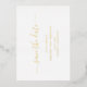 Simple wedding non photo Save the Date card with a clean and minimalist design featuring an elegant touch with "save the date" in script with swashes. All text on the front is in real gold foil. A modern Save the Date without pictures that coordinates beautifully with any style of wedding.