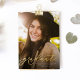 A playful but simple script graduate in foil sits at the bottom of a vertical photo. The custom text includes room for the graduate's name and also school and year details. The neutral black backer has a simple grid pattern, and the colour can be changed by clicking "customise further." The centre has room for graduation party invitation text or it can be left blank. Announce your graduate's accomplishment to friends and family with this design!