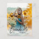 A Modern Script Simple Photo Graduation Invitation with handwritten font full bleed portrait photo on the front with name and graduation details. The back has a second photo and additional party details. Click the edit button to customise this design.