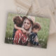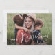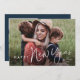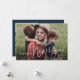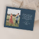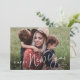 Modern Script Simple Photo New Year Holiday Card with handwritten font and full bleed portrait photo on the front with family name. The back has a second photo with a heartfelt holiday message from the family. Click the edit button to customise this design.