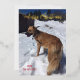 A modern script gold foil Holiday card with your pet's favourite photo . Customise it with your own Christmas greeting and your family name . The back is a classic candy cane stripe pattern .