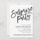 MODERN SCRIPT surprise birthday party black white Invitation