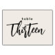 Modern Script Table 13 Thirteen Off-White Wedding or Dinner Party Table Number. 13 is written out in a trendy chic hand-lettered font. The background colour of this table number is colour editable, just click the customise further button to select any colour you need. A stylish yet simple design in black and off-white or any background colour you choose. This table number card template makes it fast and easy to create stunning additions to your wedding ceremony and reception décor.