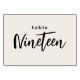 Modern Script Table Nineteen Off-White Wedding or Dinner Party Table Number. 19 is written out in a trendy chic hand-lettered font. The background colour of this table number is colour editable, just click the customise further button to select any colour you need. A stylish yet simple design in black and off-white or any background colour you choose. This table number card template makes it fast and easy to create stunning additions to your wedding ceremony and reception décor.