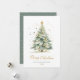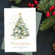 Modern Elegant Calligraphy Script Christmas Tree Non Photo Christmas Cards. This festive simple minimalist Christmas Holiday cards features a watercolor christmas tree with decoration gold balls and confetti and a „Merry Christmas” greeting text which is written in a nice hand lettered font type in gold and white. On the reverse side golden glitter snow or sparkling gold confetti on dusty green background. This festive Custom Photo Christmas Cards are a great way to remind loved ones that you're thinking of them this Winter Holiday Season.