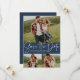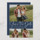 Modern script trendy three photo navy save the date