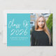 Celebrate your graduate’s achievement with these modern graduation party invitations featuring "Class of 2025" in a stylish white handwritten script on a vibrant turquoise background. Customize the front with the graduate’s name, school name, and a vertical senior photo for a personal touch. The back of the invite highlights all the essential party details in crisp white lettering on a coordinating turquoise background. Perfect for high school and college graduates, these trendy and elegant invitations set the tone for an unforgettable graduation celebration.