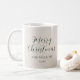 This stylish minimalist, modern, mug for christmas features, elegant modern calligraphy script in dark green with cream beige background.