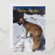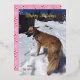 A modern gold foil Holiday card with your favourite vertical photo of your pet . The back is pink with a candy cane and snowflake pattern . Personalise it with your Holiday Greeting and family name using the provided template .