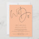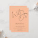 Modern Script We Do QR Code Wedding Peach. Available digitally and printed. Add your QR code to your wedding website on the back makes this a convenient option for your guests to RSVP and see all the details without the need for separate RSVP and details cards. Stylish set script We Do takes centre stage at the top. The rest of the text you can easily personalise. Text and background colours can be changed if you wish to better suit your wedding theme via the customise further option.
