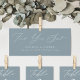 Elegant wedding seating chart header featuring the phrase "Find Your Seat" displayed in a modern white calligraphy script with a dusty blue background. Personalise the dusty blue seating chart header card with your names, wedding date, and wedding location. The design coordinates with our Modern Elegance wedding collection.
