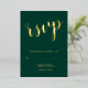 Modern Script Emerald Green and Gold Wedding Invitation Suite : RSVP Postcard