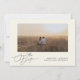 A very modern whimsical calligraphy against an ivory-coloured background script adorns this Save The Date card. Easily customise with your personal details, photo, and wedding website URL