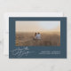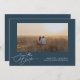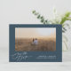 A very modern whimsical calligraphy script against a navy background adorns this Save The Date card. Easily customise with your personal details, photo, and wedding website URL