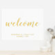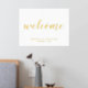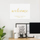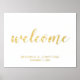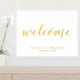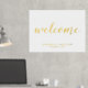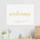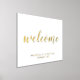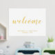 featuring title "Welcome" in real gold foil modern script font with details in real gold gold modern sans serif font on white background.