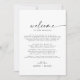 These modern script welcome letter itinerary and map cards are perfect for a destination wedding welcome bag. The simple black and white design features unique industrial lettering typography with modern boho style. Customisable in any colour. Keep the design minimal and elegant, as is, or personalise it by adding your own graphics and artwork. The front of the card features a welcome letter and itinerary. Include a map of your resort with key locations noted on the back of the card.