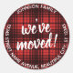 We've moved return address sticker label featuring a modern simple script and font calligraphy on a plaid gingham background