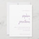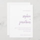 These elegant, minimalist wedding invitations feature modern script typography and classic sans serif text for a simple and stylish lavender light purple and white design you will love.