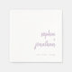 These elegant, minimalist wedding napkins feature modern script typography and clean, sans serif text for a simple and stylish white and lavender design you will love.
