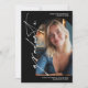 A bold, fashion-forward graduation design featuring a white handwritten script layered over a back backdrop. The arched photo window creates a modern editorial frame, giving the front a statement look that feels confident and current. The reverse side includes a multi-photo collage layout, perfect for showcasing senior portraits, beach sessions, lifestyle shots, or campus memories. The vibrant pink typography contrasts beautifully against the clean background, making this design ideal for graduates who love standout color and contemporary style.
